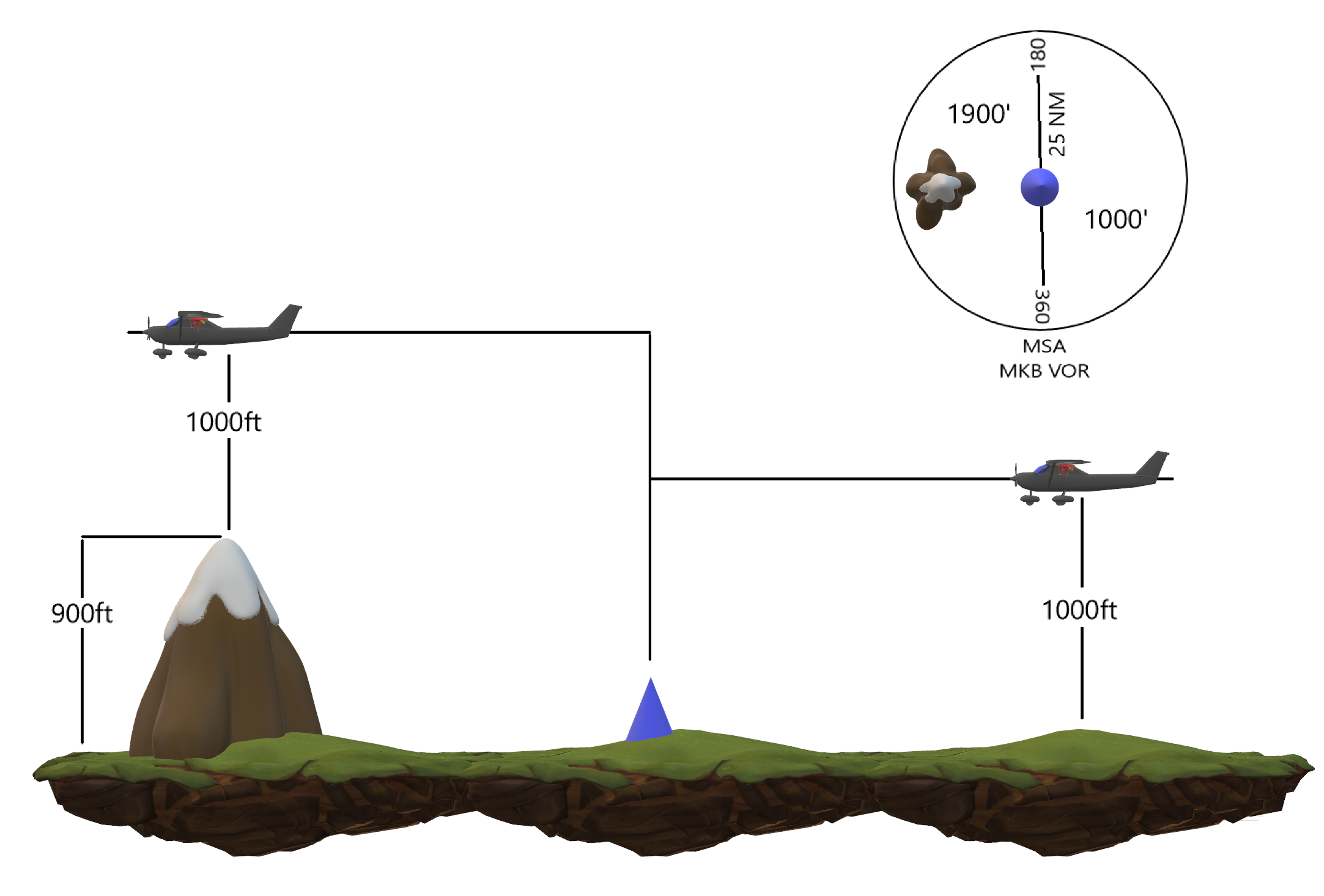 کمترین ارتفاع از سطح زمین با حداقل اختلاف 1000 فوت (300 متر) بالاتر از کلیه اشیاء واقع در یک منطقه در یک محدوده دایره ای با شعاع 25 ناتیکال مایل ( یا 46 کیلومتر) در حوالی یک ایستگاه رادیویی .