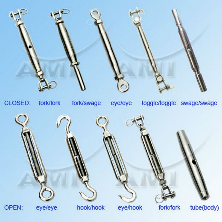 A turnbuckle, stretching screw or bottlescrew is a device for adjusting the tension or length of ropes, cables, tie rods, and other tensioning systems. It normally consists of two threaded eye bolts, one screwed into each end of a small metal frame, one with a left-hand thread and the other with a right-hand thread.