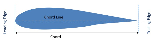 The straight-line distance across an airfoil from leading edge to trailing edge.