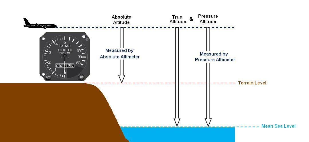 ارتفاع سنج مطلق ، ارتفاع سنج الکترونیکی راداری که ارتفاع مطلق یعنی ارتفاع هواپیما را از سطحی که بر فراز آن پرواز می نماید را نمایش می دهد. عملکرد آن به اینصورت هست که فاصله هواپیما از زمین توسط محاسبه زمان رفت و برگشت امواج بدست می آید.