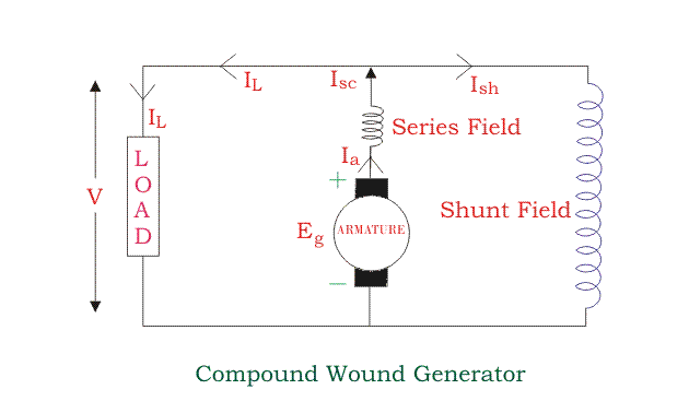 An electrical generator which has both a series and a shunt field winding.
