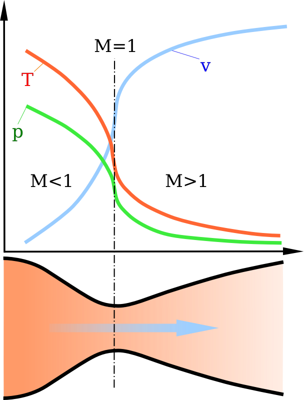 Con-di nozzle (de Laval nozzle or convergent-divergent nozzle,or CD nozzle) is a tube that is pinched in the middle, making a carefully balanced, asymmetric hourglass shape. It is used to accelerate a hot, pressurized gas passing through it to a higher speed in the axial (thrust) direction, by converting the heat energy of the flow into kinetic energy. Because of this, the nozzle is widely used in some types of steam turbines and rocket engine nozzles. It also sees use in supersonic jet engines.