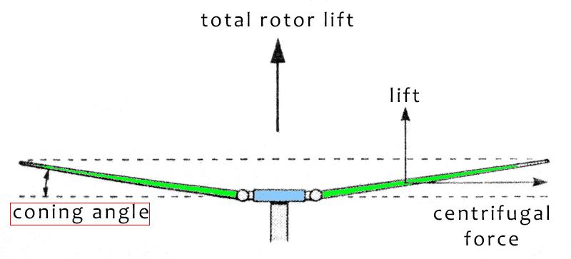 زاویه ای که تیغه های ملخ هلیکوپتر با سطح عمود بر محور روتور محور روتور هنگام تولید نيروی ليفت ایجاد می شود . اندازه زاویه اين مخروطه رابطه مستقيم با برآيند نیروی گريز از مركز و نيروی ليفت تولید شده توسط تیغه دارد.