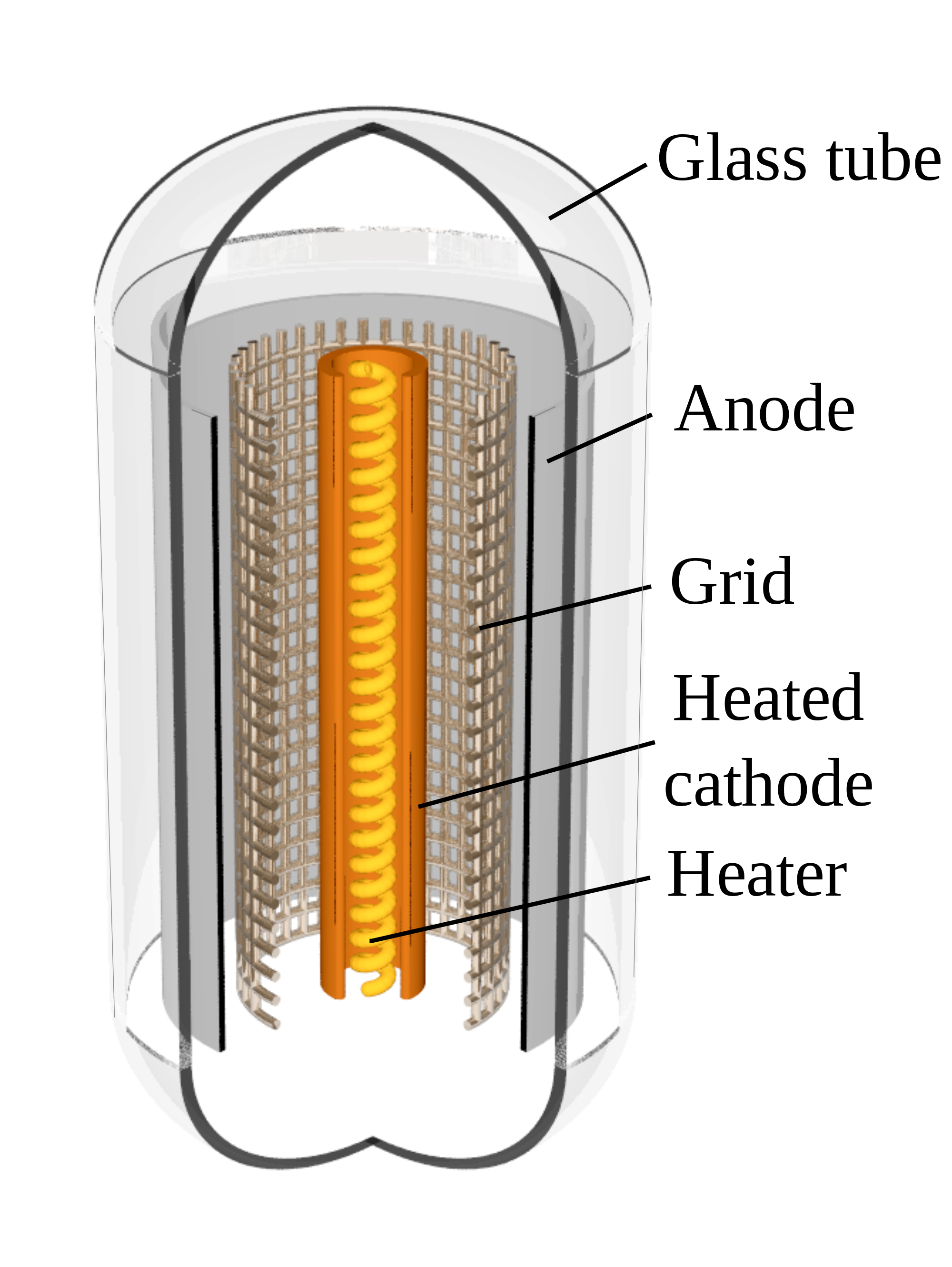 الکترود داخل حباب لامپ لوله الکترون که به منبع تغذیه وصل است.
