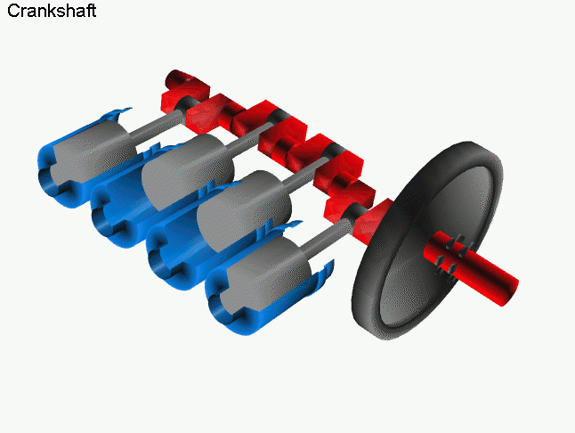 The central component of a reciprocating engine, a high-strength, alloy steel shaft with hardened and polished bearing surfaces that ride in bearings in the crankcase. Offset throws are formed on the crankshaft on which crankpins are ground and polished. Connecting rods, driven by the pistons, ride on the crankpins and change the in-and-out motion of the pistons into rotation of the crankshaft. The propeller of an airplane or the rotor system transmission of a helicopter is driven by the crankshaft.