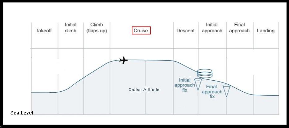 بالاترین ارتفاع هواپیما از سطح دریاهای آزاد در زمان پرواز ، فاصله بین آخرین مرحله صعود تا قبل از شروع به نزول هواپیما برای فرود در مقصد .