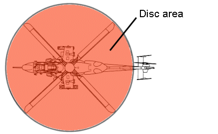 The total area swept by the main rotor of a helicopter.