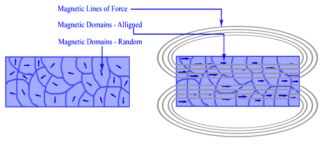 Spheres of magnetic influence around molecles of metals containing iron.A discrete region of magnetism in ferromagnetic material.Magnetic fields.