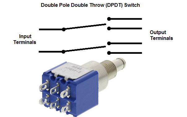 A type of electrical switch with six terminals. It can be used to select any one of three conditions in two separate circuits.
