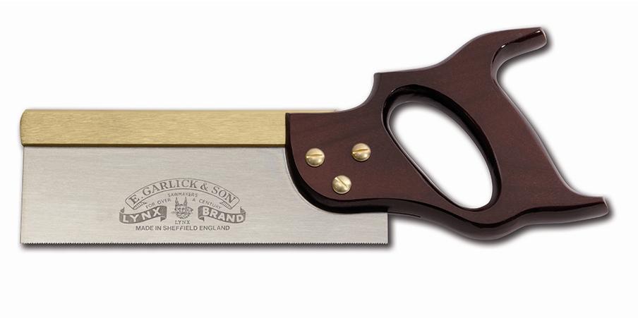 A small backsaw with thin blade, fine teeth, and straight handle used for accurate work (as in cabinetmaking and patternmaking)