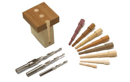 A round wooden peg used to fasten pieces of wood together without the use of metal fasteners. Holes are drilled into each of the pieces to be joined, and a short dowel is pressed into the holes to hold the pieces together.