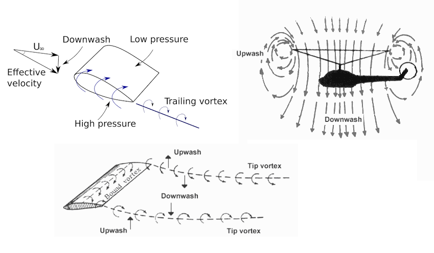 انحراف جریان هوا روی سطح بال بطرف پایین و عمود برمسیر حرکت ، جریان توده هوایی که توسط تيغه هاى ملخ هليکوپتر بطرف پایین منحرف میشود