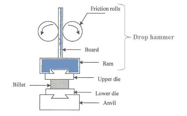 A large, heavy weight raised mechanically and allowed to drop, as used in drop-forging .