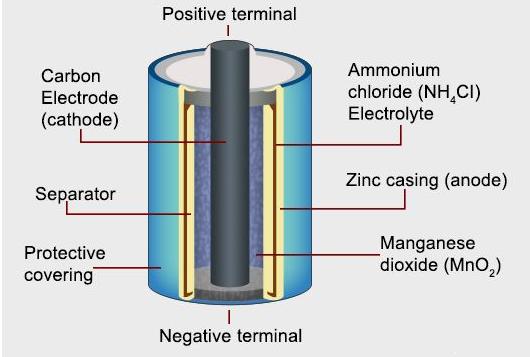 نوعی باتری كه الكترودهای آن از جنس روی و كربن باشد و الكتروليت آن بصورت خمیری است و كلیه اجزاء تشكيل دهنده آن در محفظه آب بندی شده قرار دارند.