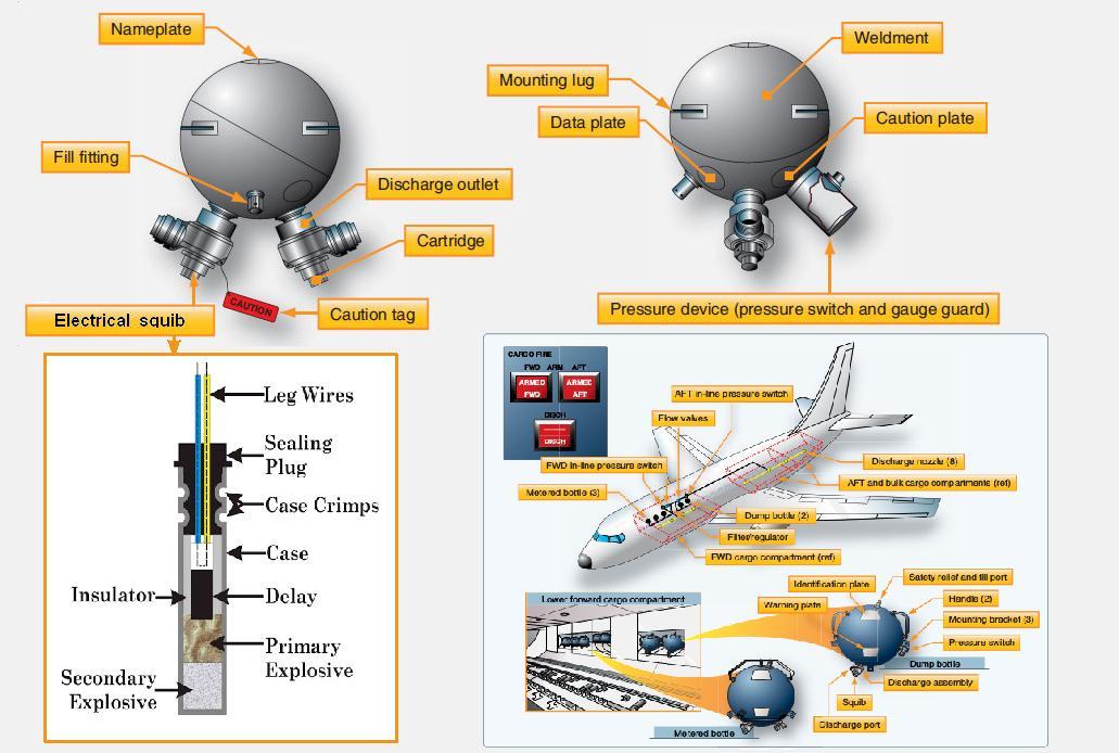 کلاهک و چاشنی انفجاری در سرکپسول اطفاء حریق در سیستم اطفاء حریق هواپیما که توسط جریان برق تحریک و منفجر میشود و به این وسیله محتویات کپسولها جهت خاموش نمودن آتش خارج میشوند.
