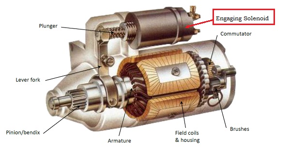 سولنوید یا سیم پیچ الکتریکی که باعث درگیر شدن استارتر به محور موتور میشود