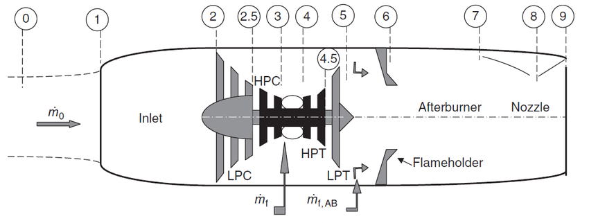 In gas turbine engines, numbered locations along the engine length, or along the gas path used for the purpose of identifying pressure and temperature points, component locations and the like.