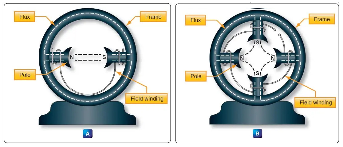 بدنه مولد یا موتوری که قطبهای میدان مغناطیسی به آن وصل اند .ساختار و بدنه اصلی یک ژنراتور یا موتور که روی آن قطب ها و سیم پیچ ها نصب شده است.
