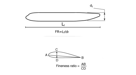 The ratio of the length to the maximum diameter of a streamlined body of an airfoil , such as wing or aircraft body.