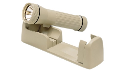 A flashlight is a portable handheld device that produces light, typically using batteries and an electric bulb or LED. It is used to illuminate areas in the dark or low-light conditions and is commonly used in aviation for inspection, emergency signaling, or maintenance tasks.