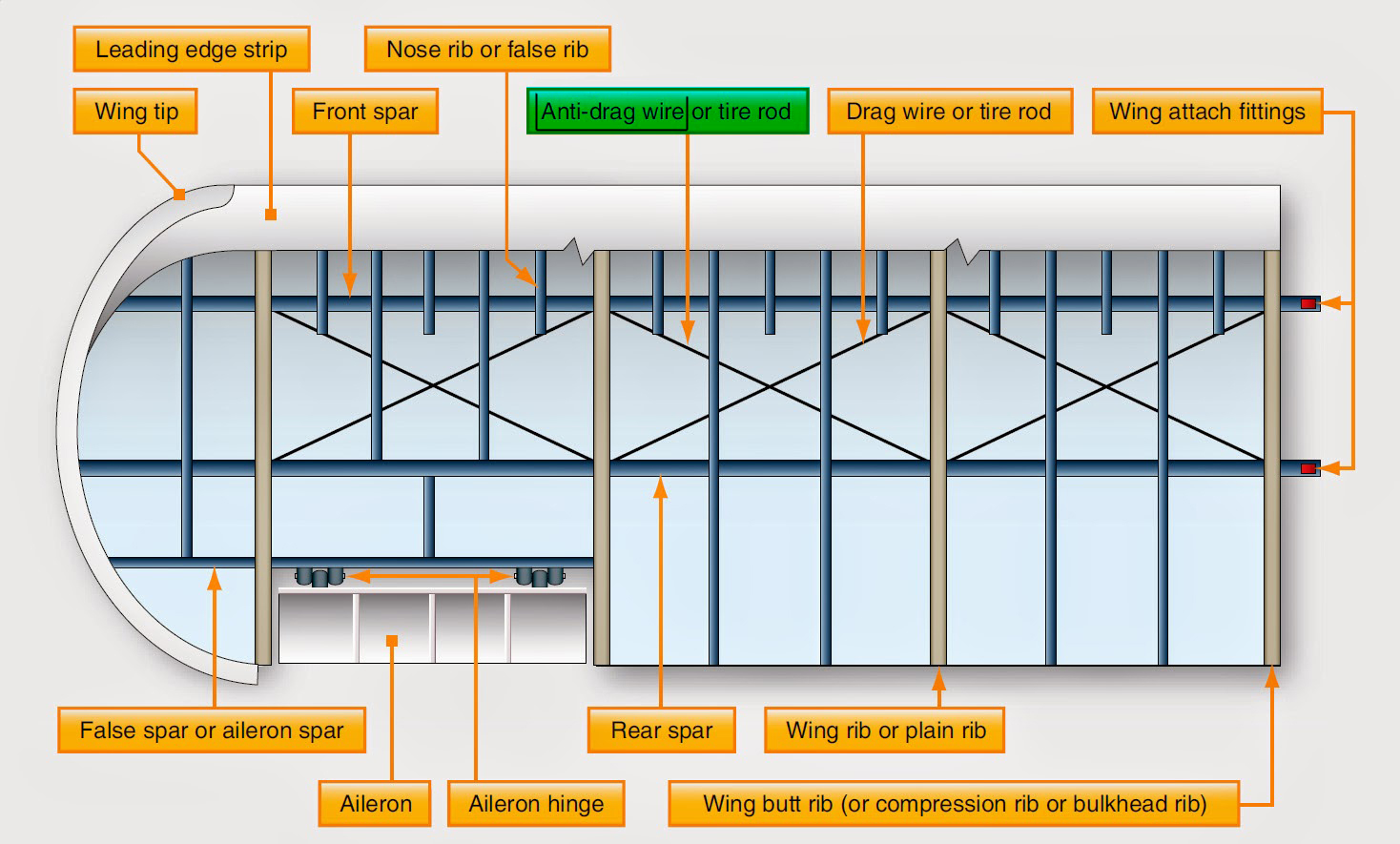 در بالهای با سازها از نوع یرات تراس کابلی که به صورت مایل بین دو نقطه از بال اعضاء اصلی را به یکدیگر وصل می کند و در مقابل نیروهای وارد از طرف جلو مقاومت می کند
