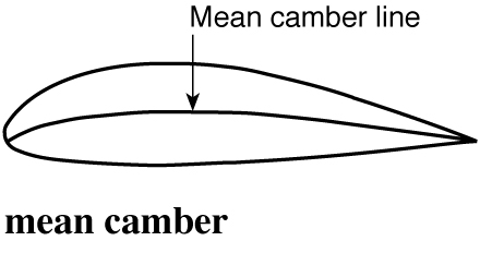 A line that is drawn midway between the upper and lower camber of an airfoil section. The mean camber determines the aerodynamic characteristics of the airfoil.