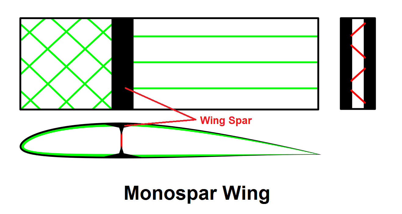 A form of airplane wing structure which uses only one spar, or main spanwise structural member, to carry the loads.