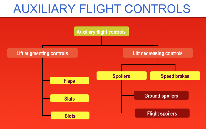 سطوح کنترل پروازی کمکی، سطوحی که کارشان ایجاد براء (لیفت)اضافی و یا پسا (درگ) روی هواپیماست مثل فلاپها، شکافها (slots)، اسلات ها (ُslats) وغيره
