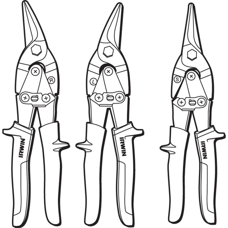 Compound-action hand shears used for cutting sheet metal. aviation snips come in sets of three. one pair cuts to the left, one pair cuts to the right, and the third pair cuts straight.