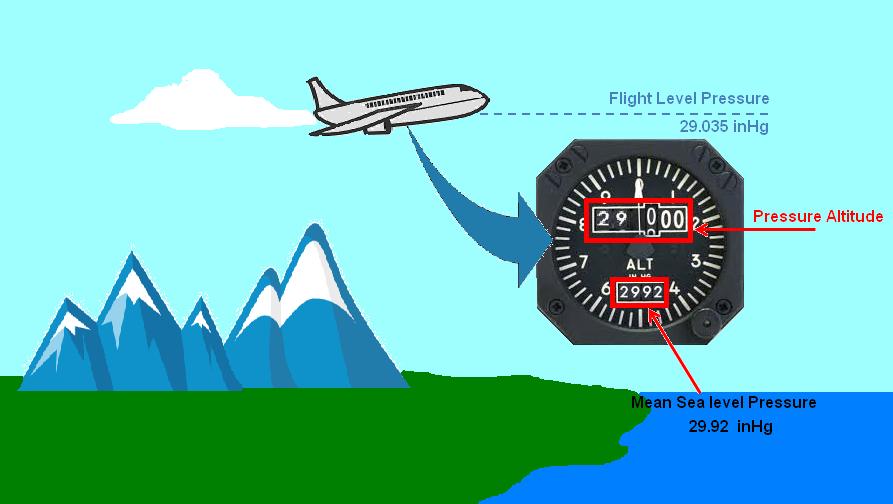 the altitude shown by the altimeter actually results from the pressure difference between the existing altitude and the sea level pressure, which is 29.92 inches of mercury.