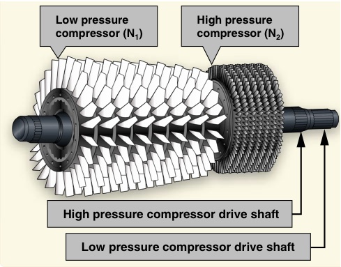 کمپرسور مولد جریان خطی ، کمپرسور موتور توربینی که هوا را در راستای یک خط متراکم میکند (بر خلاف کمپرسوری که بر اساس نیروی گریز از مرکز کار میکند)