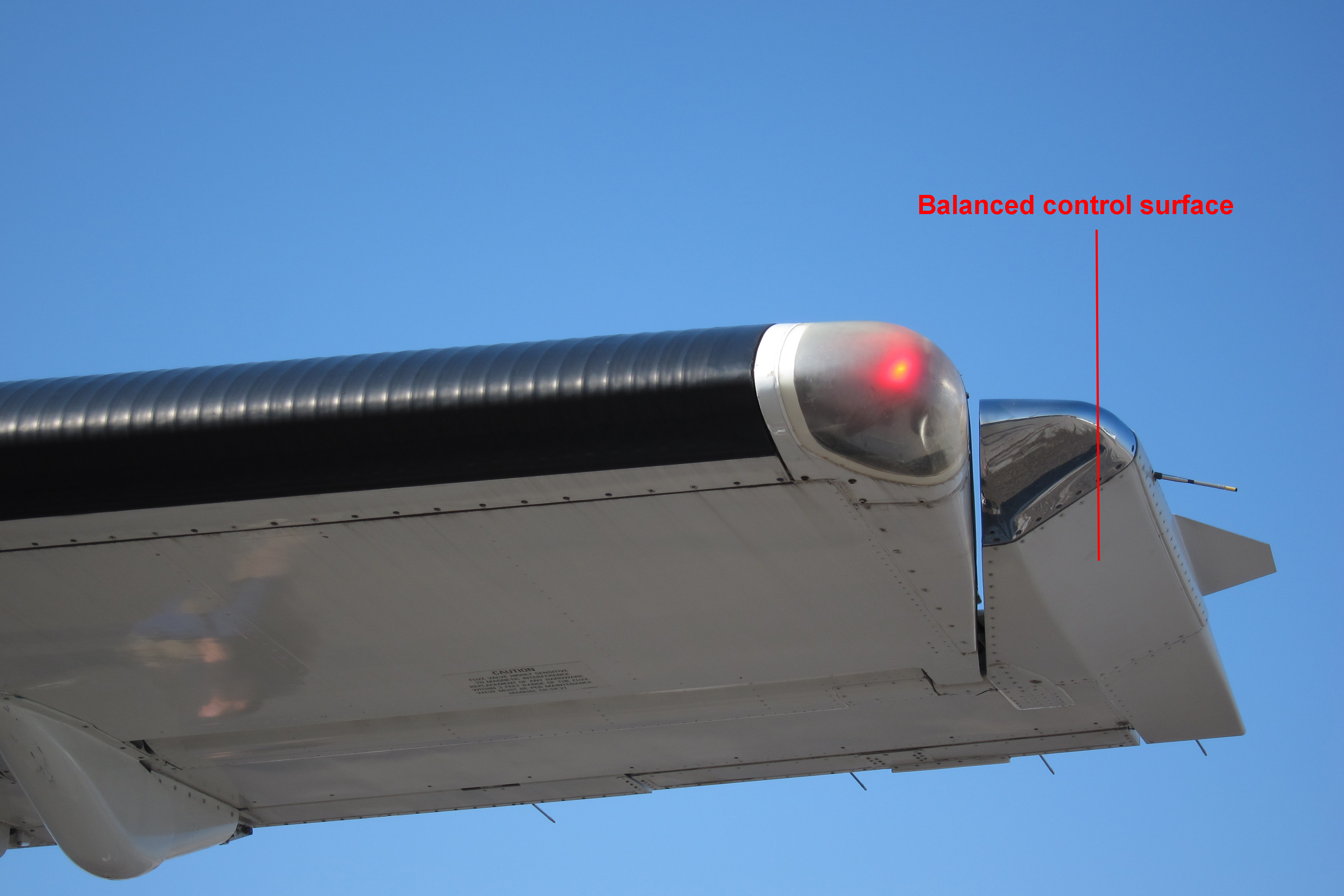 A movable primary control surface on an airplane designed in such a way that aerodynamic forces help the pilot move the surface. A portion of the surface, called the balance area, extends ahead of the hinge line, and the force of the air pushing on this balance area aids the pilot in moving the surface.
