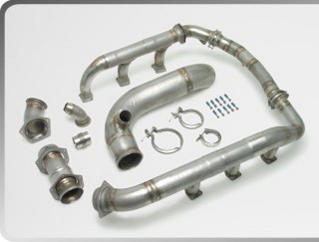 لوله بلند و پهن اگزوز موتورهای پیستونی، این نوع اگزوز برای کاهش صدا طراحی و ساخته شده است ، در این نوع اگزوز گازهای خروجی از موتور، لوله ی اگزوز را از طریق یک شکاف که به موازات طول لوله امتداد دارد ترک می کنند .طراحی لوله این نوع اگزوزها به گونه ای است که از برگشت و پس زدن فشار جلوگیری کرده و همانطور که در ابتدا گفتیم سر و صدا را کاهش داده و همچنین از جریان هوای سرد به داخل اگزوز در طی مانورهایی مانند لغزش جلوگیری می کنند. این هوای سرد می تواند باعث تاب خوردن سوپاپ ها شود.