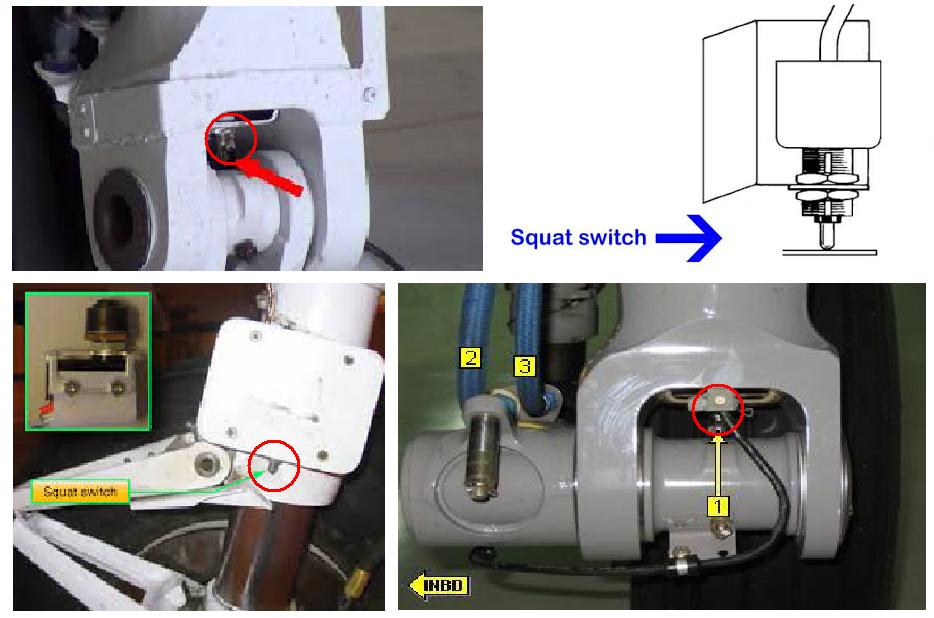 A switch mounted on the shock strut of an aircraft landing gear. The squat switch is in a circuit whose actuation depends upon the configuration of the landing gear. For example, the squat switch prevents the landing gear retraction handle being moved any time weight is on the landing gear. A squat switch can also be installed in the cabin pressurization system to prevent the cabin being pressurized if the airplane is on the ground and weight is on the landing gear.