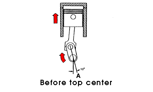 وضعیت میل لنگ بر حسب درجه قبل از آنکه پیستون به نقطه مرگ بالای خود در سیلندر برسد