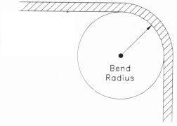 The radius of the inside of a bend in a piece of sheet metal, tubing, or wire bundle.