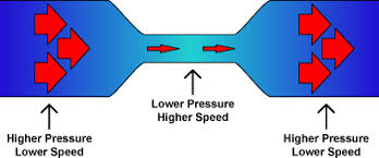 A fundamental principle of physics that explains the relation between kinetic and potential energy in a fluid in motion. When the total energy in a column of moving fluid remains constant, any increase in the kinetic energy of the fluid (its velocity) results in a corresponding decrease in its potential energy (its pressure).