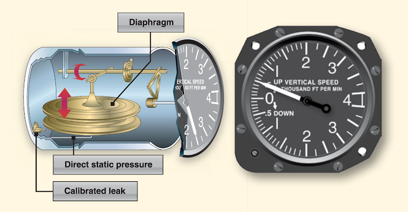در داخل محفظه این نشانگر یک بلوز (آنیرویید) وجود دارد که فشار هوای استاتیک محیط پیرامون هواپیما را بصورت مستقیم دریافت می کند اما فشار داخل خود محفظه اصلی نشانگر با محدودیت و کمی تاخیر نسبت به بلوز دریافت میشود و لذا وقتی ارتفاع هواپیما در حال تغییر باشد بین بلوز و محفظه اختلاف فشار بوجود می آید. وقتی هواپیما ارتفاع خود را تغییر می دهد ، فشار داخل بلوز بلافاصله تغییر می کند. اما به دلیل محدودیت کالیبره شده ، تغییر فشار داخل محفظه با تاخیر همراه است. و نهایتاً اختلاف فشار داخل و خارج از بلوز باعث انبساط یا انقباض آن شده و این تغییر باعث می شود که عقربه روی صفحه نشانگر حرکت کند و سرعت صعود یا فرود را به خلبان نشان دهد.