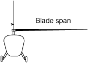 The length of a helicopter rotor blade from its tip to its root.