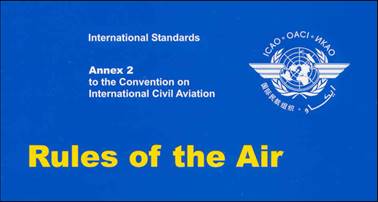 قواعد و مقررات بين المللي براي خلبانان و كاركنان مراقبت پرواز درزمينه بعضي از نكات كه در هوا بايد مورد توجه قرار گيرد،ميباشد.از جمله اين قواعد ومقررات حق تقدم هواپيما ها نسبت به يكديگر در هواست