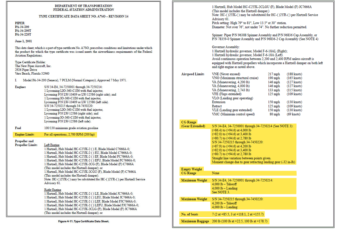 Type Certificate Data Sheets (TCDS) are a part of the Type Certification Process and contain information relevant to the certification of particular aircraft. TCDS contains information that is useful, not only at the time the aircraft undergoes certification, but as an ongoing resource for the life of an aircraft. Any time a Certificate of Airworthiness requires renewal or re‐issue, aircraft configuration or aircraft performance information is required or some particular limitations are being considered, the TCDS may provide crucial information.Following are examples of what might be found on the data sheets, although the information does vary from aircraft to aircraft.