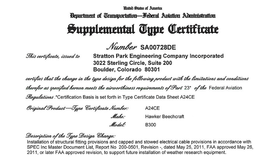 گواهینامه مکمل ساخت توسط اداره هواپیمایی تصویب و صادر می شود که یک محصول بهینه شده است از قبیل ساختار هواپیما یا موتور یا ملخ .هنگامی که کسی تغییراتی را در یک هواپیمایی( یا موتور یا ملخ ) تایید شده طراحی می کند ، این طراحی و تغییر قبل از اینکه اعمال باید مورد تایید قرار گیرد . STC یک متد برای گرفتن این تاییدیه می باشد . STC تغییرات طراحی محصول را تعریف می کند، چگونگی این اصلاح بر طراحی موجود بیان می کند و لیستی از قطعات و یا هواپیماهایی که این تغییرات بر روی آنها قابل اجرا می باشد در اختیار می گذارد .همچنین بر اساس صدور گواهینامه، لیستی از الزامات قانونی خاص برای تغییر طراحی را مشخص می کند .اطلاعات مندرج در آن بسیار مفید برای تغییرات در محصول بعدی و ارزیابی سازگاری با دیگر تغییرات می باشد .