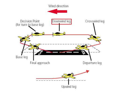مسیر پرواز در زمان تقرب و فرود هواپیما که موازی با باند فرود و در جهت مخالف فرود است. این مرحله بین مراحل crosswind leg و base leg قرار دارد.