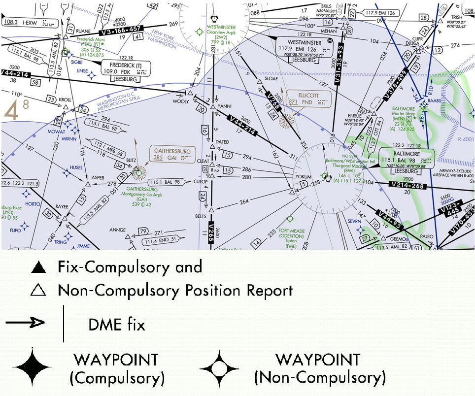 این نقاط که معمولا وابسته به یک ایستگاه رادیویی زمینی بوده بصورت از پیش تعیین شده در نقشه های ناوبری مشخص گردیده اند و از آنها برای تعیین مسیر ، اعلام موقعیت و وضعیت پرواز استفاده می شود.