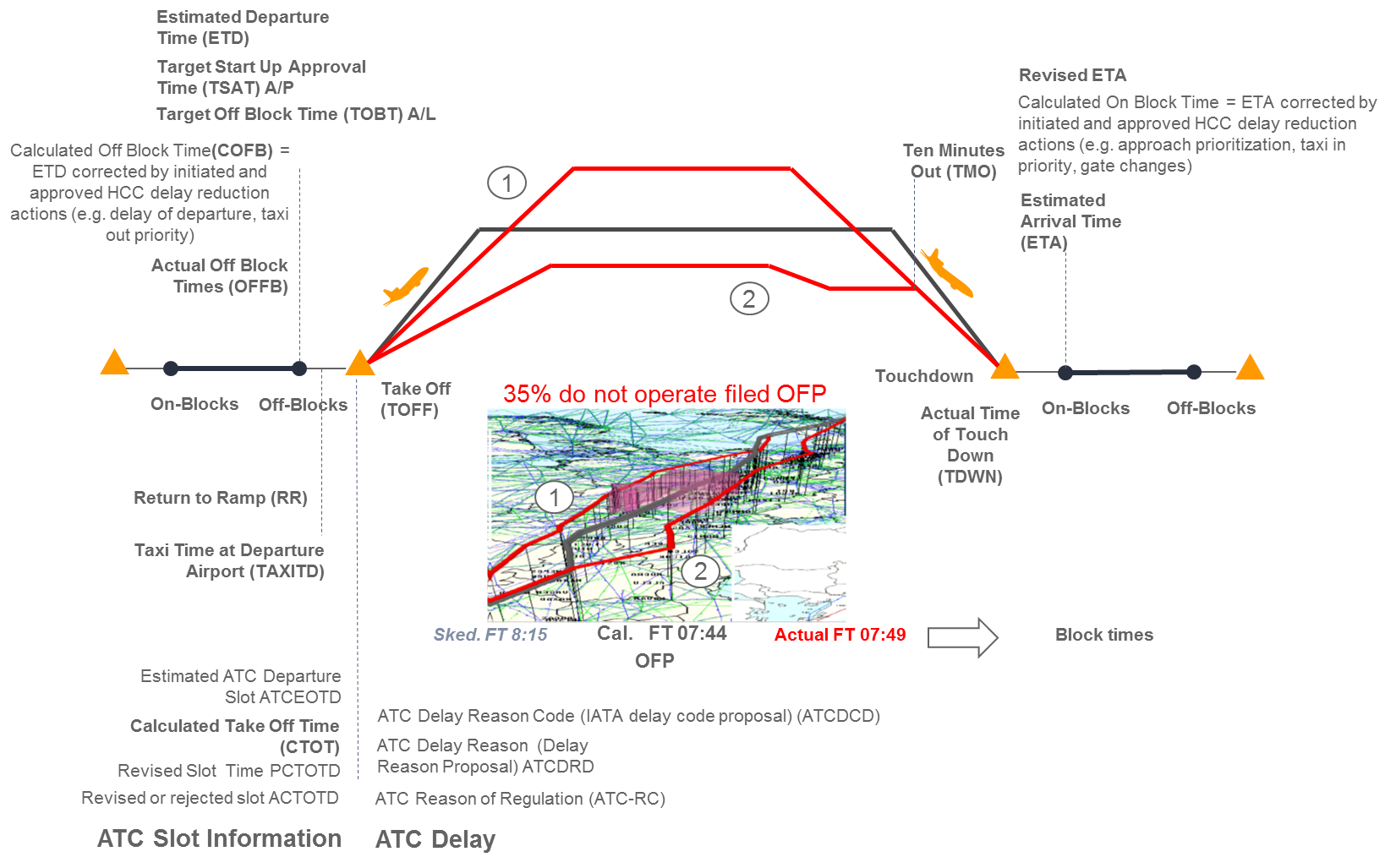 The amount of elapsed time between an aircraft leaving the departure ramp for the purpose of flight and its reaching the arrival ramp at the end of the flight.