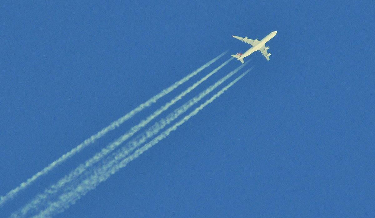 Contrails ( short for "condensation trails") are line-shaped clouds produced by aircraft engine exhaust or changes in air pressure, typically at aircraft cruise altitudes several miles above the Earth's surface. Contrails are composed primarily of water, in the form of ice crystals. The combination of water vapor in aircraft engine exhaust and the low ambient temperatures that exist at high altitudes allows the formation of the trails.