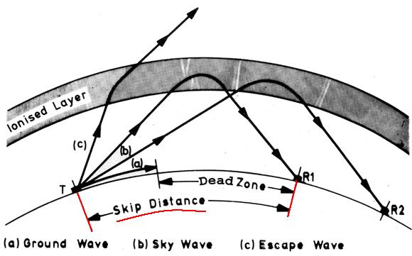 فاصله آنتن ایستگاه فرستنده رادیویی با اولین محل برخورد امواج بازتابیده شده از یونسفر با زمین را Skip Distance می گویند.