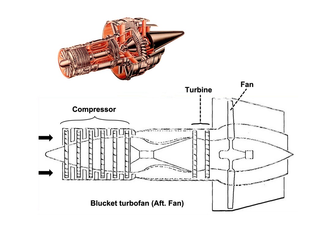 ترکیبی از تیغه های توربین و فن در موتورهائیکه توربین در جلو فن(هواکش) قرار دارد (موتورهای Aft fan )