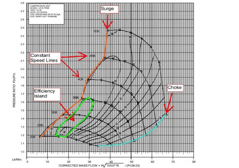 نقشه ها ونمودارهای عملكرد کمپرسور كه توسط تولید کننده موتورهای جت تهیه شده است. این نمودار نشان دهنده عملکرد یك کمپرسور است كه سازنده برای طراحی ویژگی های منحصر به فرد آن محاسبات و طراحی دقیق انجام داده است.