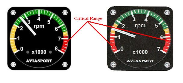 محدوده ای از دور موتور كه در آن ميزان ارتعاشات و لرزش موتور و ملخ از حد طبیعی و نرمال خارج گردیده باشد . این محدوده بر روی نشان دهنده دور موتور بصورت یك قوس قرمز رنگ مشخص گردیده.
